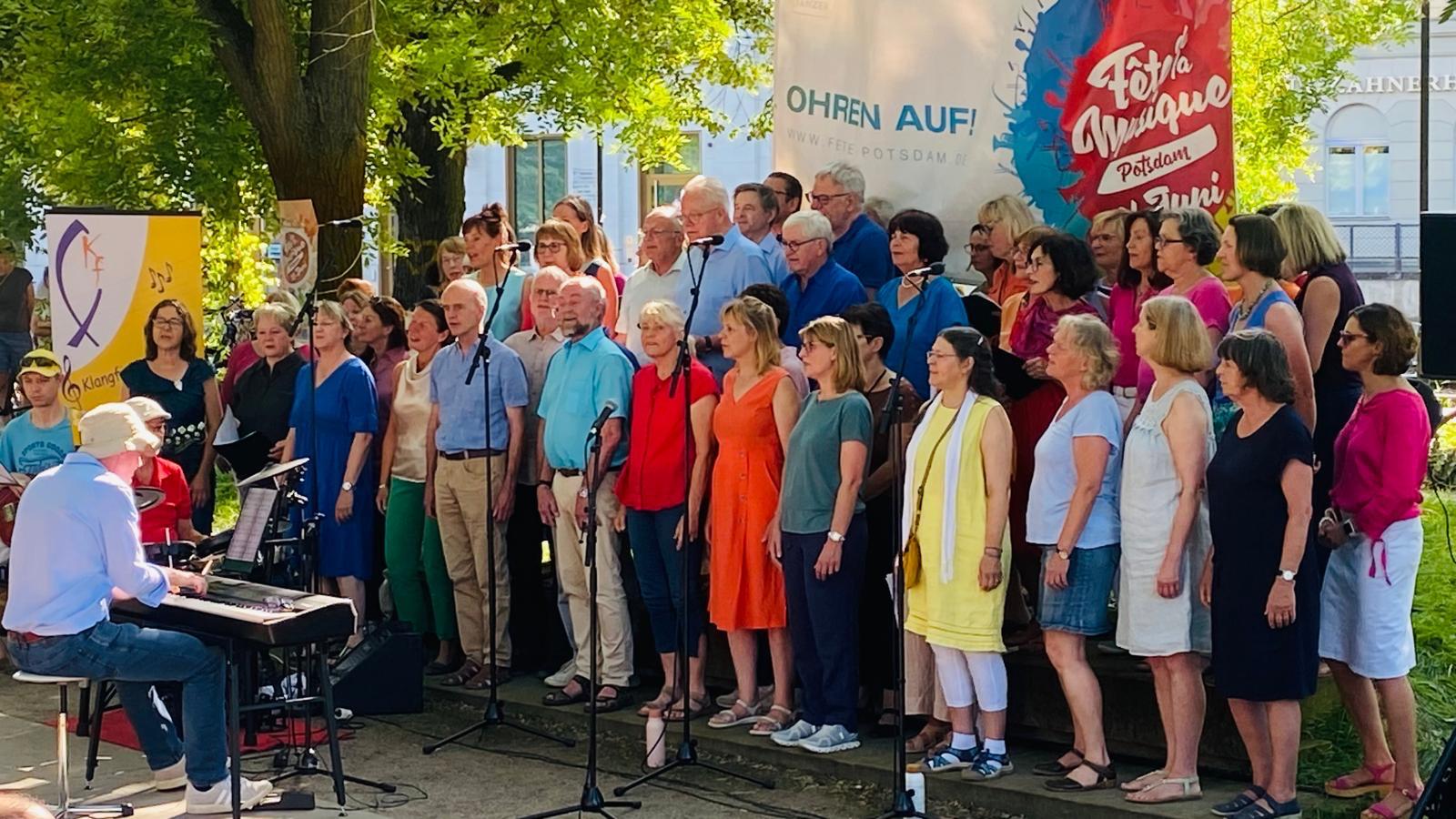 Am 21. Juni 2025 sangen die Klangfischer auf der Fête de la Musique in Potsdam auf dem Platz der Einheit
